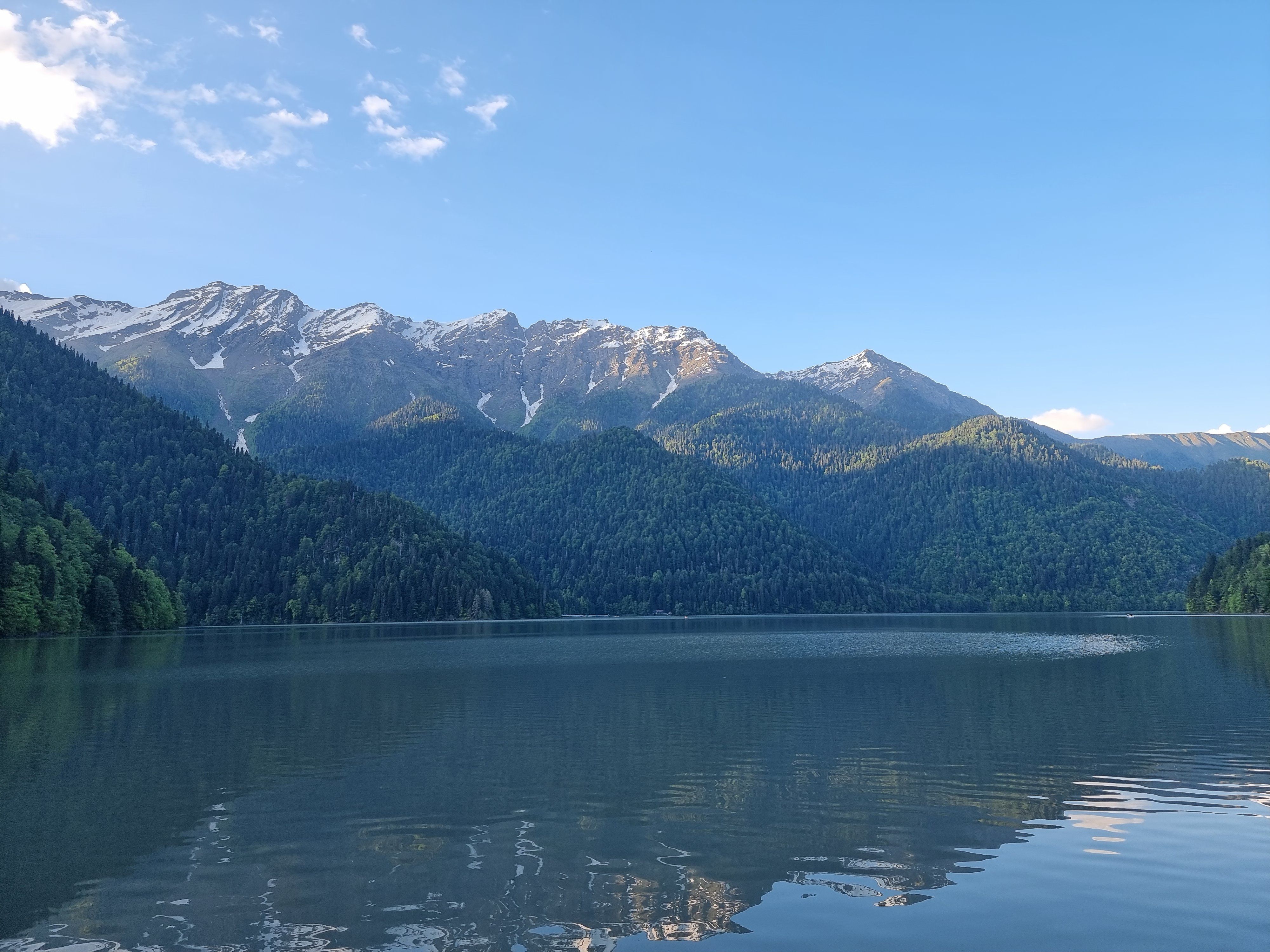 С вокзала Адлер на такси до (пешеходной) границы Псоу. На стороне Абхазии заберем и поднимем в горы. Связь работает российская.